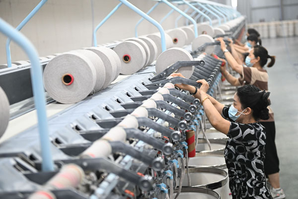 在泗洪縣金鎖鎮一家紡織企業,員工在車間忙碌。近年來,江蘇省宿遷市泗洪縣金鎖鎮創新“共享廠房”模式,破解各村資金、工業用地、項目等不平衡難題,促進群眾就業、企業發展。新華社記者 季春鵬 攝