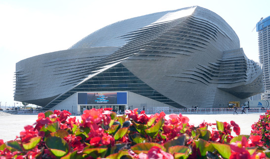 圖為6月25日拍攝的第十五屆夏季達沃斯論壇主會場大連國際會議中心外景?!⌒氯A社記者 章磊 攝