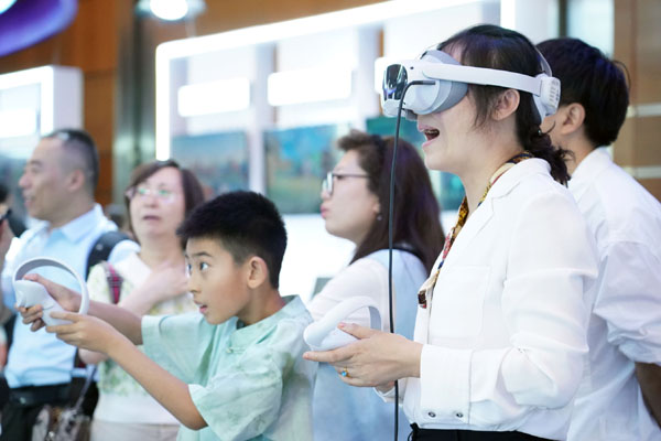 7月2日至5日,以“開啟數智新時代,共享數字新未來”為主題的2024全球數字經濟大會在北京國家會議中心舉辦。圖為7月2日,觀眾在2024全球數字經濟大會數字經濟沉浸式體驗區體驗一款VR設備。新華社記者 任超 攝