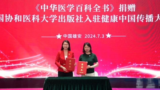 捐贈儀式之后,中國協和醫科大學出版社與雄安新區未來健康傳播中心簽署戰略合作協議。作為正式簽約入駐健康中國傳播大廈的第一家“中字頭”單位,中國協和醫科大學出版社將進一步推進院士進駐大廈健康傳播院士基地,將雙方在各自領域的領先優勢和共同使命結合在一起形成“權威+傳播”合力,聯合生產和輸出更具權威性的健康知識和健康節目,進一步推動形成融媒體環境下的出版新業態。