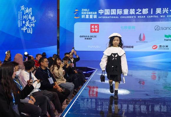 織里鎮某童裝類活動上,童模正在展示新款童裝。資料照片