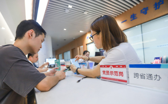 6月28日,在江西省萍鄉市湘東區政務服務中心醫保服務區,工作人員正指導群眾辦理異地就醫備案登記業務。新華社發