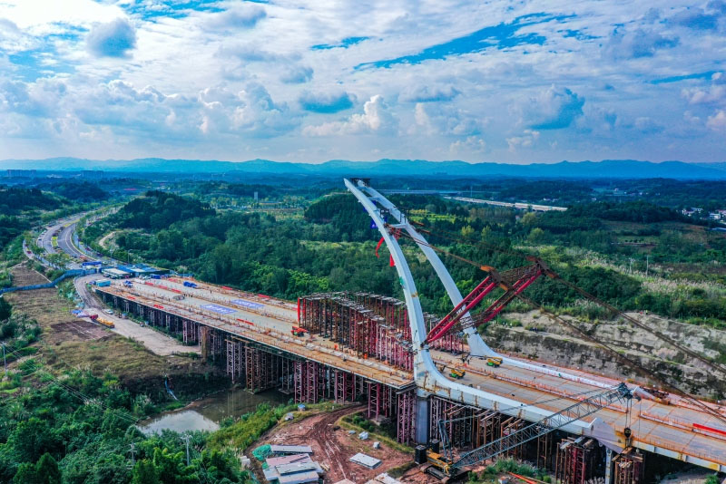 圖為中鐵重工參建的成都空港新城北一線跨絳溪河大橋鋼橋塔豎轉成功。該項目是成都首座千噸級橋塔豎轉成功的橋梁,實施過程創下多個全國第一。資料照片