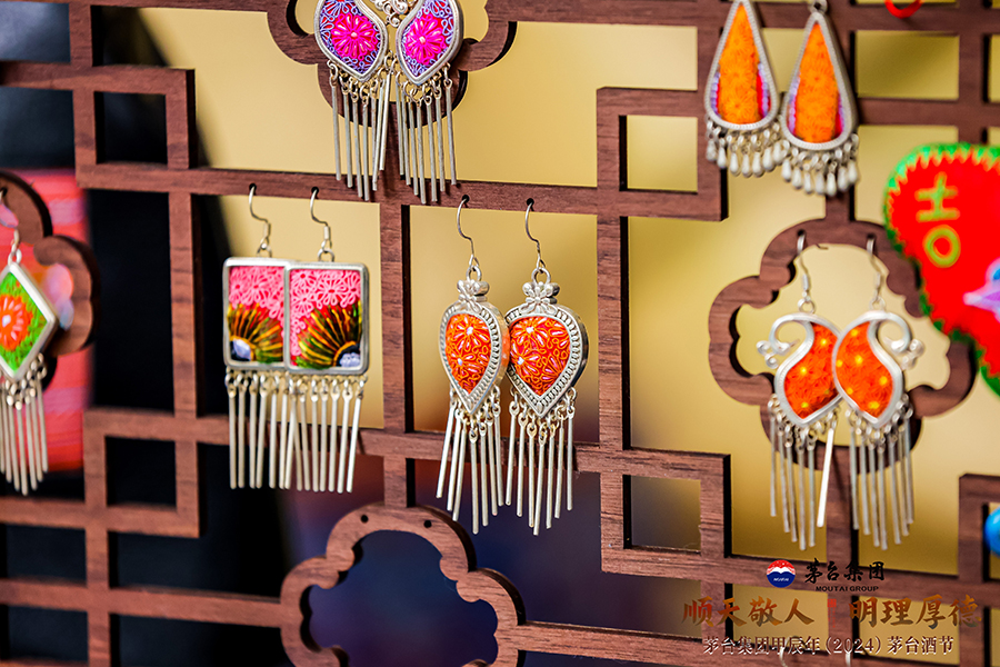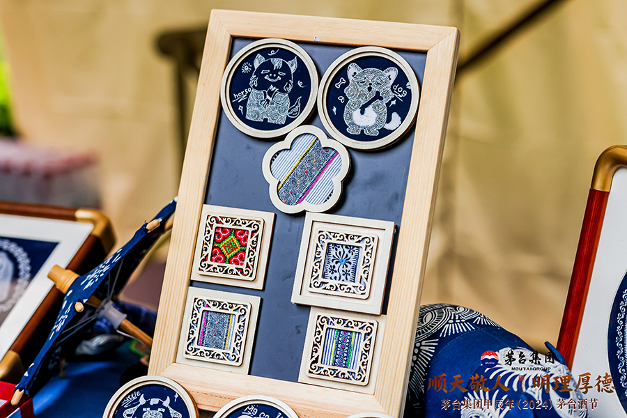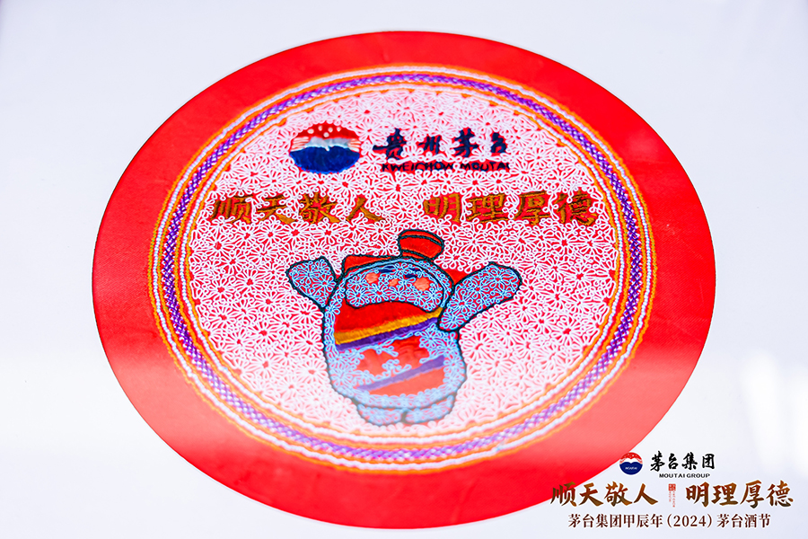 10月11日,用貴州水族馬尾繡繡成的茅臺“小茅”形象。