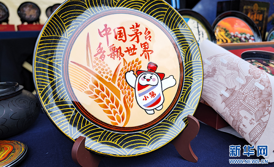 10月11日,以貴州大方漆器工藝制作的茅臺“小茅”形象漆器圓盤。新華網 盧志佳 攝