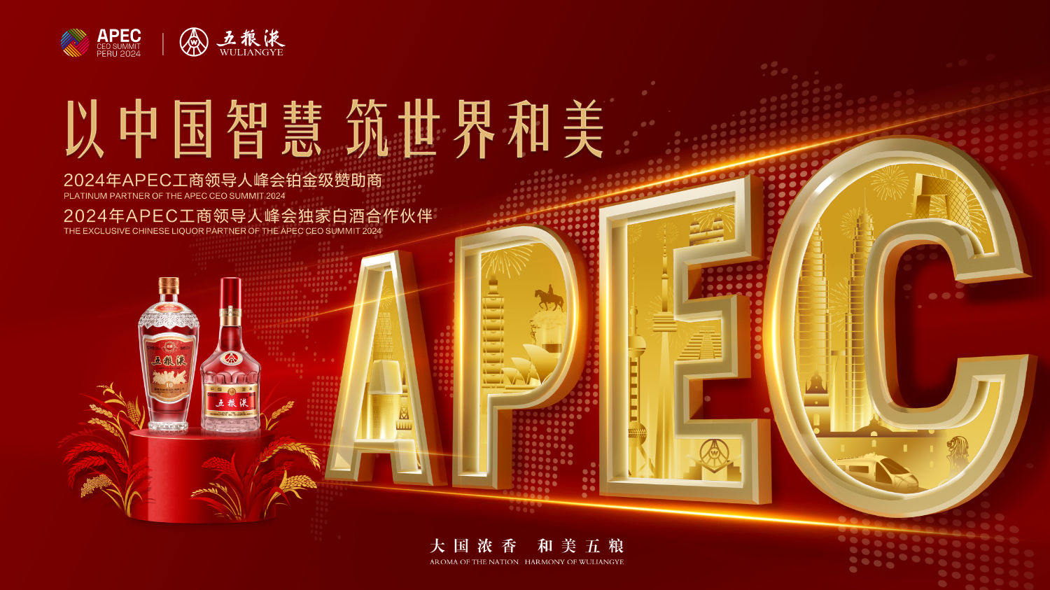 亞太經合組織(APEC)第三十一次領導人非正式會議即將在秘魯利馬舉行,民族品牌代表五糧液將作為本屆APEC舉辦的工商界最高峰會——2024年APEC工商領導人峰會(以下簡稱“APEC峰會”)“鉑金級贊助商”和“獨家白酒合作伙伴”亮相利馬,深入參與峰會及配套活動議程,并在峰會設置展位,多維呈現來自東方的匠心釀藝、品質魅力與“和美”文化底蘊。