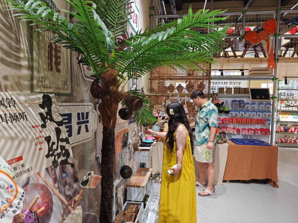 在老街一家非遺文創店里,來自浙江杭州的游客王銣斐正在挑選用椰子殼制作的冰箱貼,準備作為禮物送給朋友。