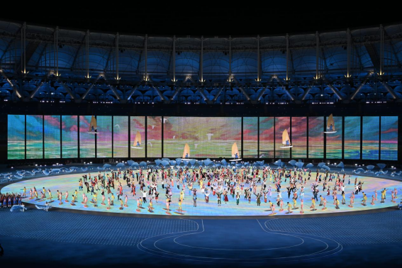 本次運動會的開閉幕式,在流程上設計有更多的表演及交流環節,其所需要的泛光照明保障工作也與過往不同,不只需要專業的功能性保障,導演組還要求泛光照明保障團隊與其配合,將泛光照明應用于演出節目中。