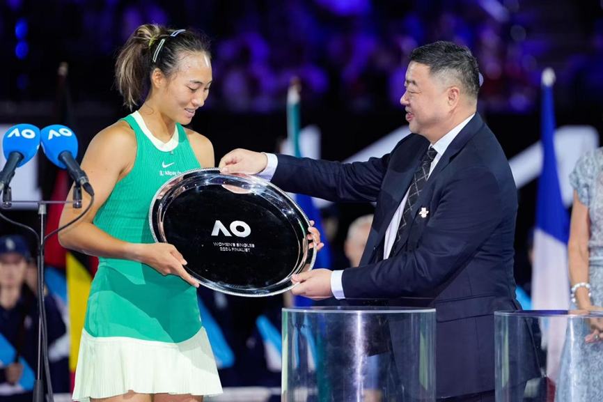瀘州老窖股份有限公司總經理林鋒為2024澳網女單亞軍鄭欽文頒獎