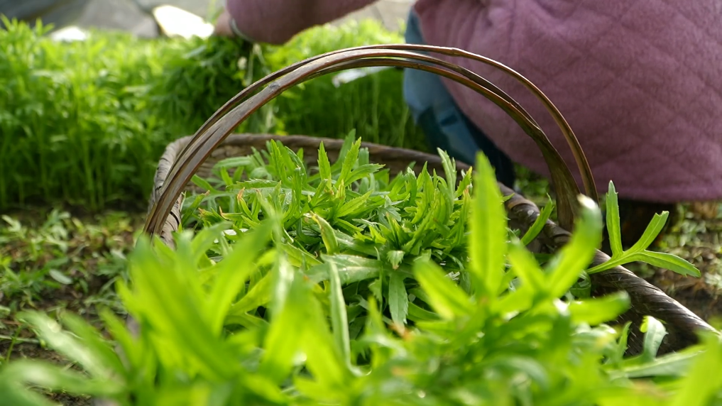 大寒時節,湖北陽新的萬畝湖蒿迎來豐收,正是品嘗當地特色時令美食湖蒿炒臘肉的佳期。
