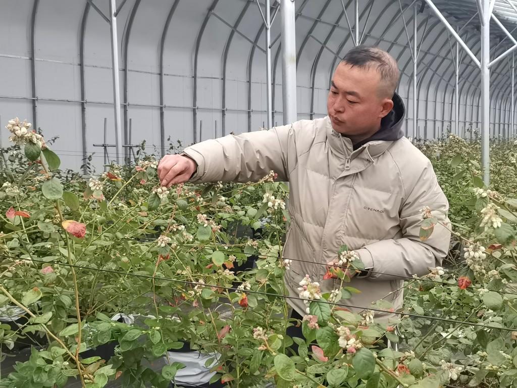 1月23日,何曉磊在鳳陽小崗藍莓產業發展有限公司管護藍莓。新華社記者 水金辰 攝