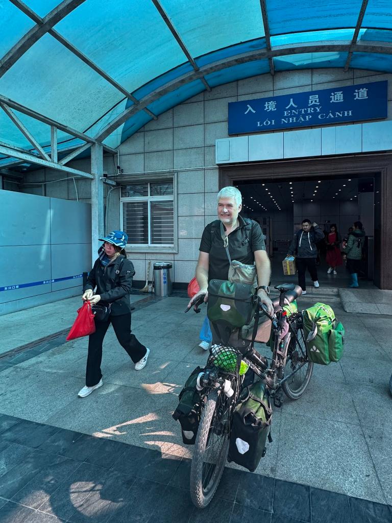 當德國游客伯納德推著自行車,跨越紅白相間的中越友誼大橋中線,走進廣西東興口岸入境通道時,他向海關衛生檢疫工作臺上的工作人員豎起了大拇指。