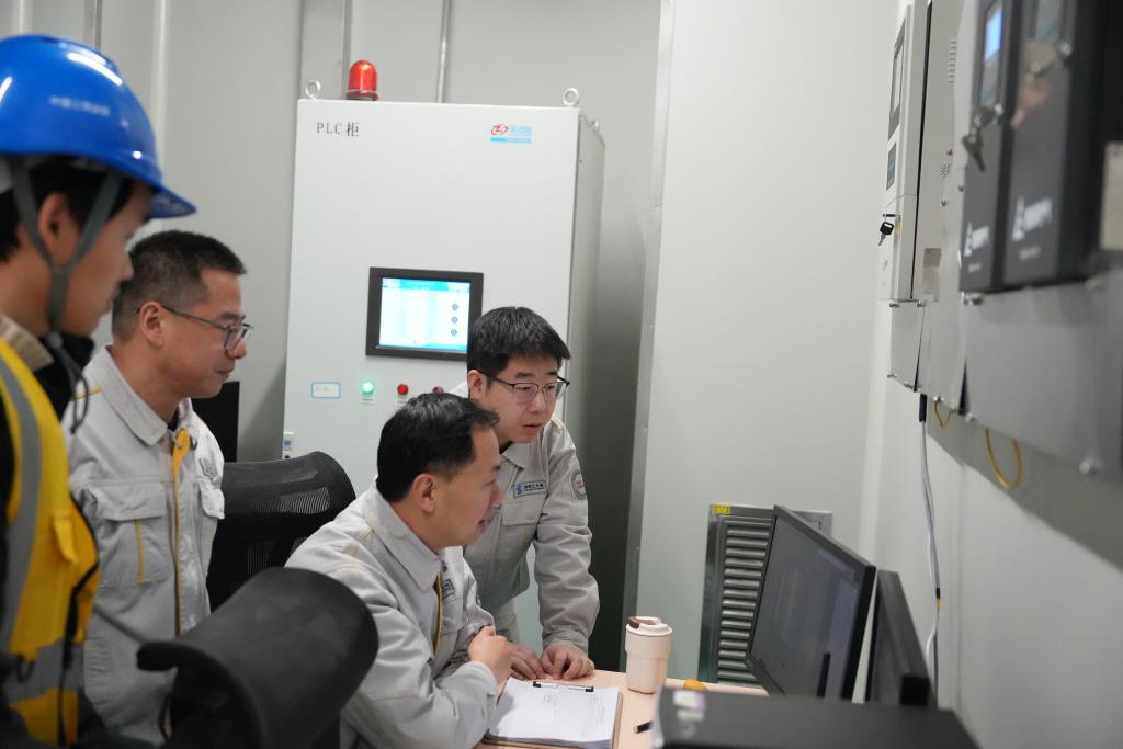 國投集團雅礱江公司地下實驗室管理局運維團隊在監測系統運行狀態。新華社發