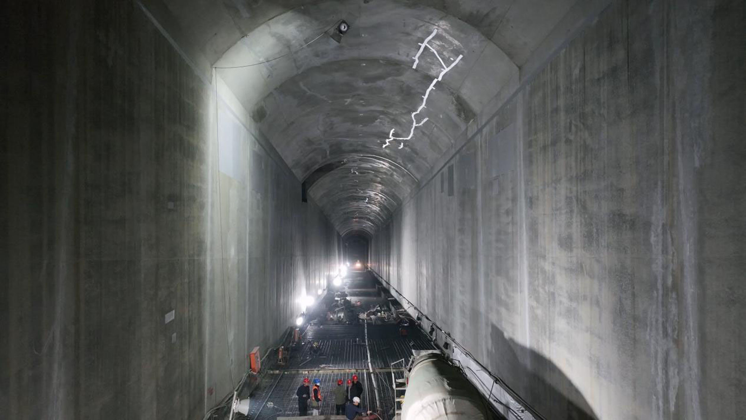 從廠房出來,記者來到3號導流洞進口閘室及豎井泄洪洞下平段施工現場,剛完成襯砌的洞室內混凝土清晰得甚至可以照出人影。