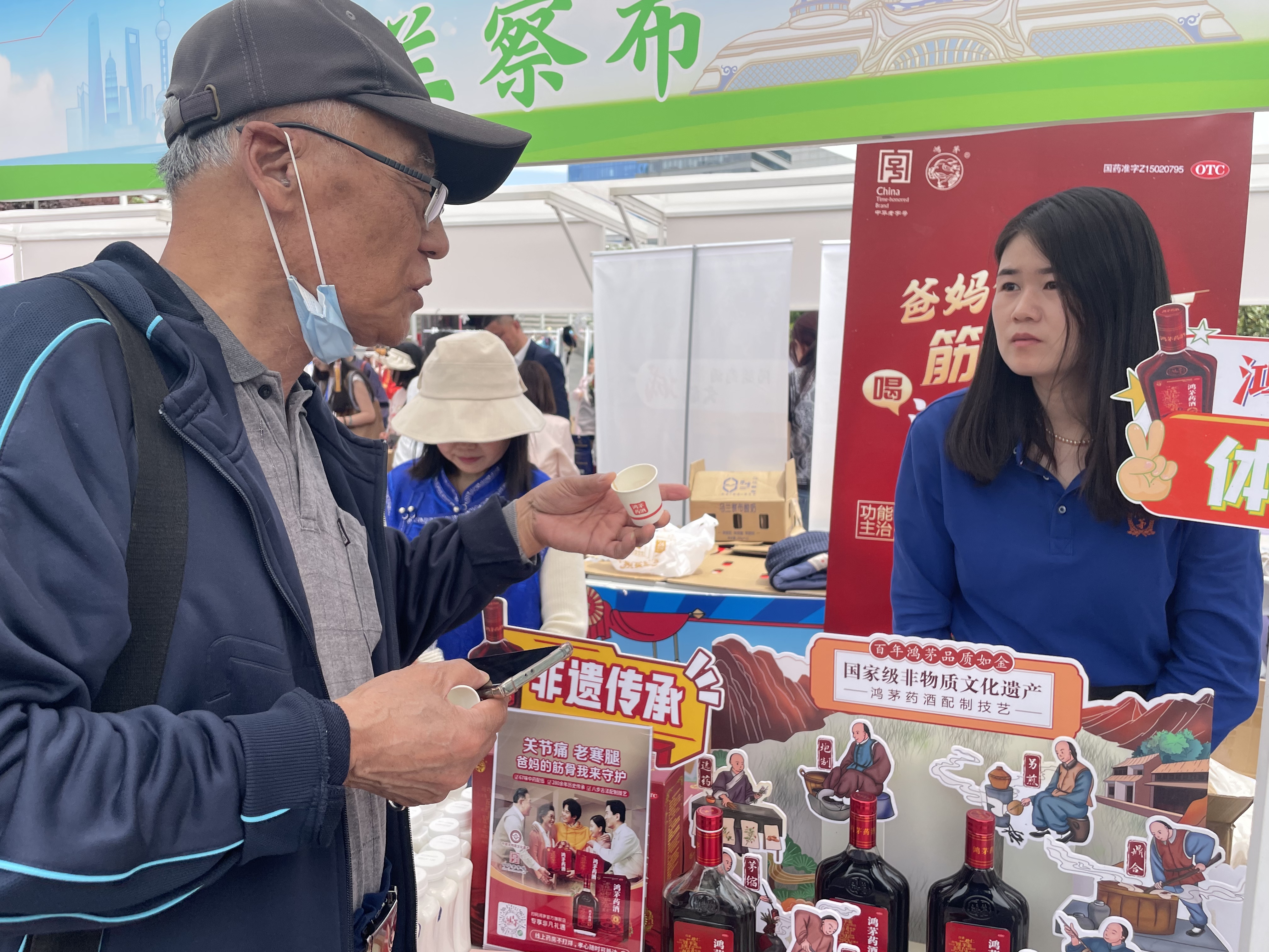 鴻茅藥酒展位前觀眾熱情互動