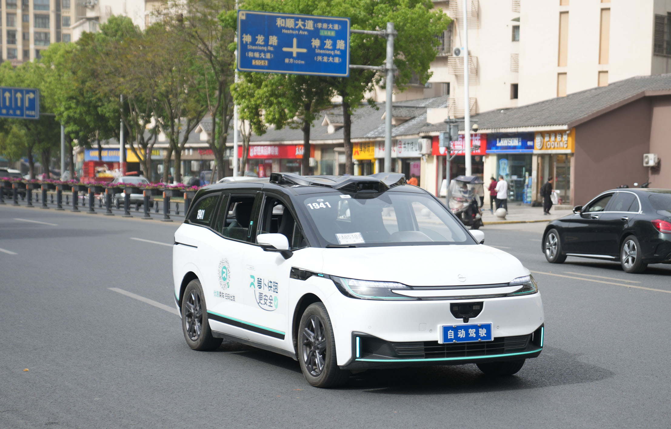 一輛自動駕駛網約車行駛在重慶永川城區?!⌒氯A社發(陳安鑫 攝)