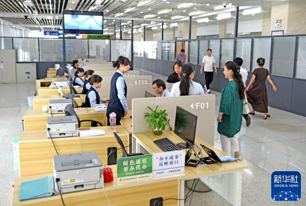 淮南市政務服務大廳為企服務專區,窗口工作人員熱心為企服務。新華社客戶端發(陳彬攝)
