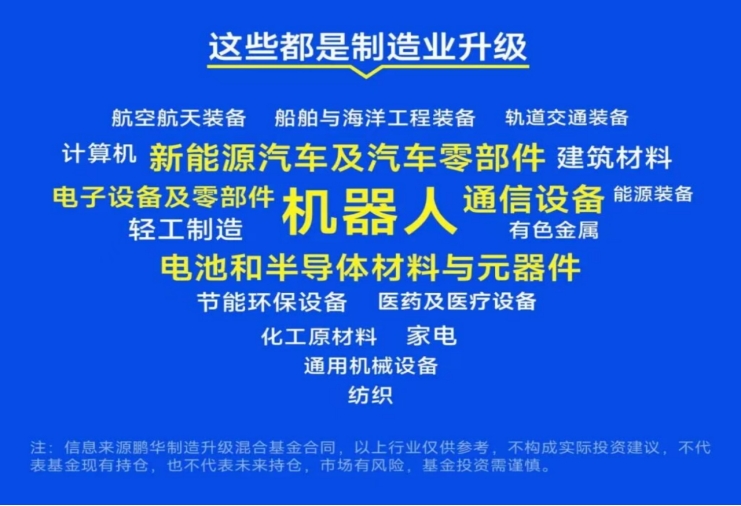 鵬華制造升級混合投資策略為制造升級主題,涵蓋以高端化和智能化推動的高端裝備制造業、以高新技術引領具有高技術附加值、代表新經濟發展趨勢的制造業領域和以技術提升和優化調整為目標的傳統制造業。
