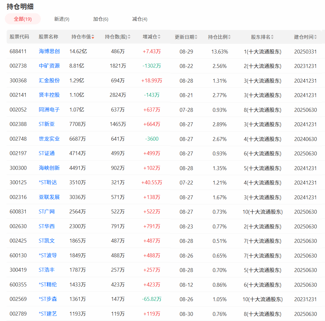 公開數據顯示,截至2025年二季度末,魏巍躋身19家A股上市公司前十大股東之列,總持倉市值約為15億—16億元(含ST股及法拍新增股份),其對儲能領域似乎興趣漸濃。