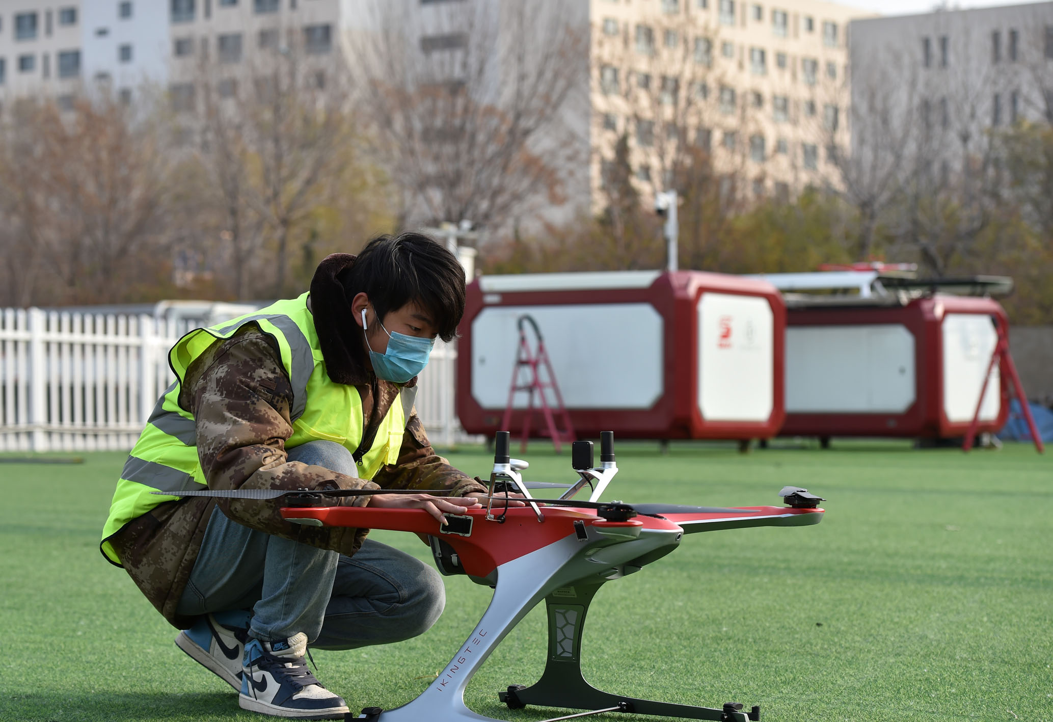 圖為天津濱海新區工作人員進行無人機測試準備工作。資料照片