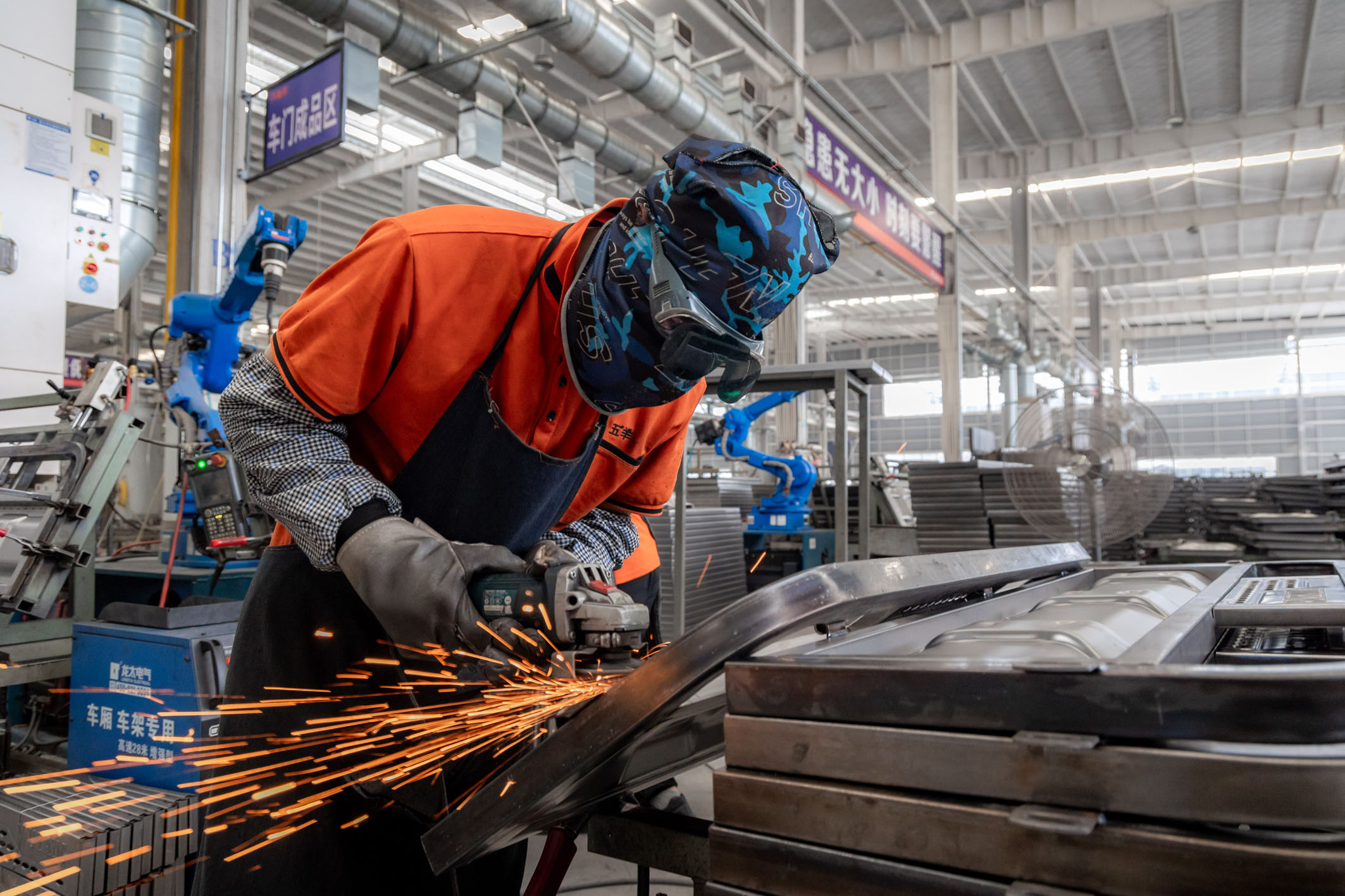 近年來,江蘇省徐州市豐縣大力發展集研發、生產、銷售于一體的電動車產業鏈。全縣累計擁有電動三輪車整車及配套企業1000多家,年整車生產能力超500萬輛。圖為豐縣電動車生產企業車間內的工人在研磨電動三輪車配件。