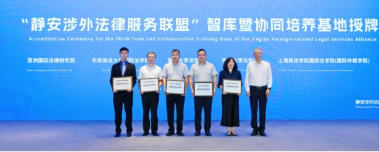 聯盟致力于構建境外企業“引進來”和中國企業“走出去”涉外泛法律服務合作體系,提供全鏈條、一站式服務,依托靜安國際會客廳、全球服務商“一站式”出海服務中心等平臺,加強國際合作與交流,實現合作共贏。隨后,聯盟成員代表共同簽署了“聯盟共識”,承諾在信息共享、業務協作、人才培養、國際交流等方面深化合作。靜安區委常委、政法委書記王翔為聯盟合作伙伴、智庫暨協同培養基地授牌,標志著靜安涉外法律服務協同機制正式啟動。