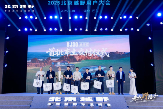 2025北京越野用戶大會日前于湖北巴東舉行,首批BJ30旅行家車型的交車儀式也同時舉行。北京越野為首批車主授予榮譽身份及專屬禮遇,首批車主成為“輕越野生活方式傳播者”。