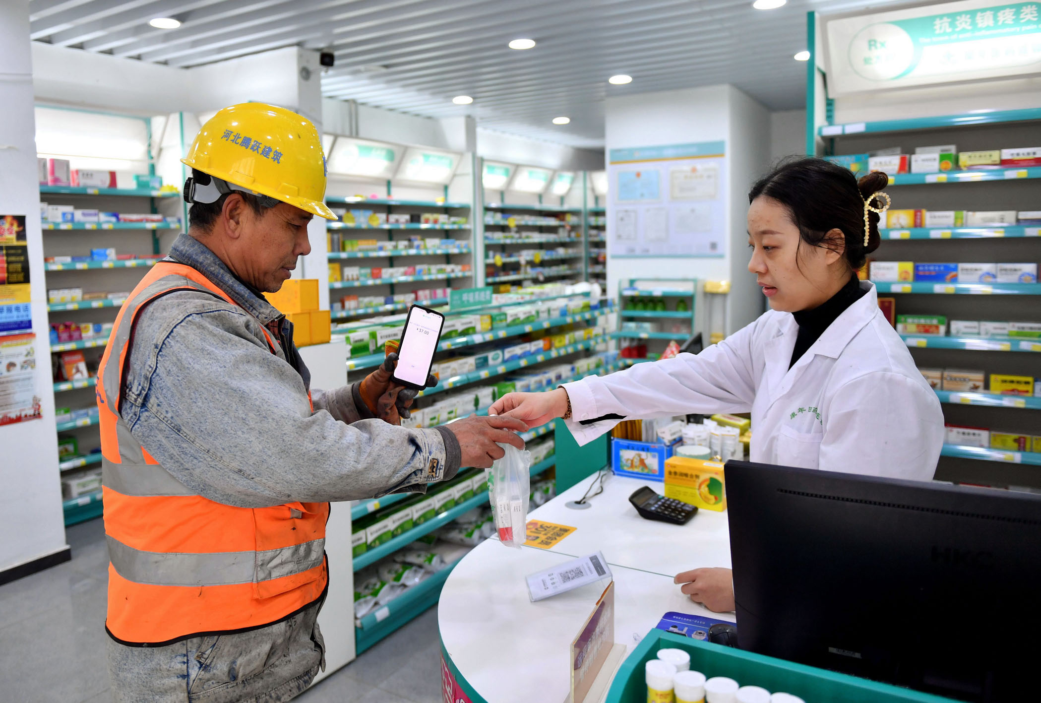 在雄安新區一家藥店內,顧客在購買藥品。新華社記者 秦婧 攝