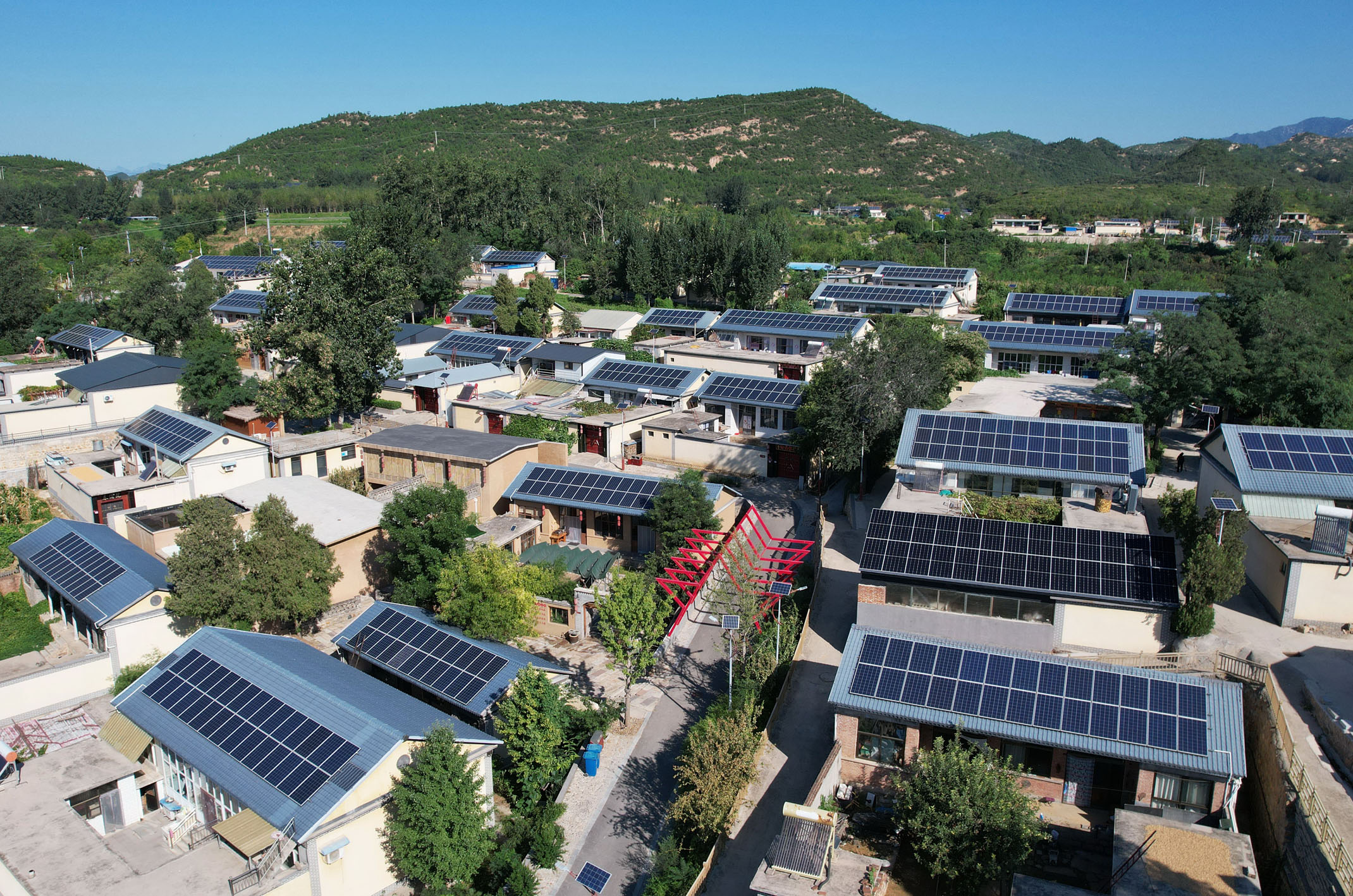 圖為河北省平山縣西柏坡鎮北莊村兆瓦級“光儲”智能微電網示范工程項目中的屋頂光伏發電板。新華社記者 楊世堯 攝