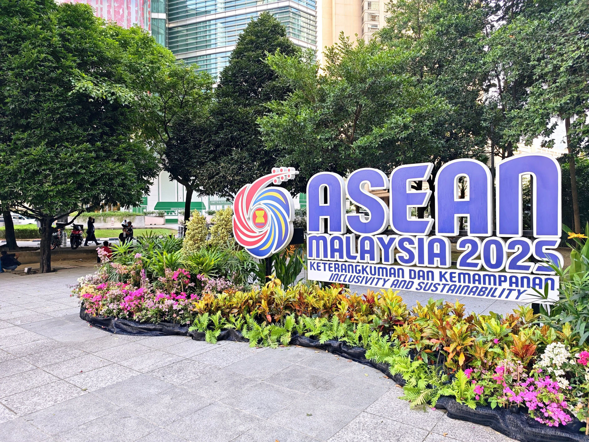 圖為在馬來西亞首都吉隆坡街頭拍攝的東盟峰會標識。第47屆東盟峰會及系列會議于10月26日至28日舉行,東盟各國領導人將重點討論東盟共同體建設及對外關系等議題。