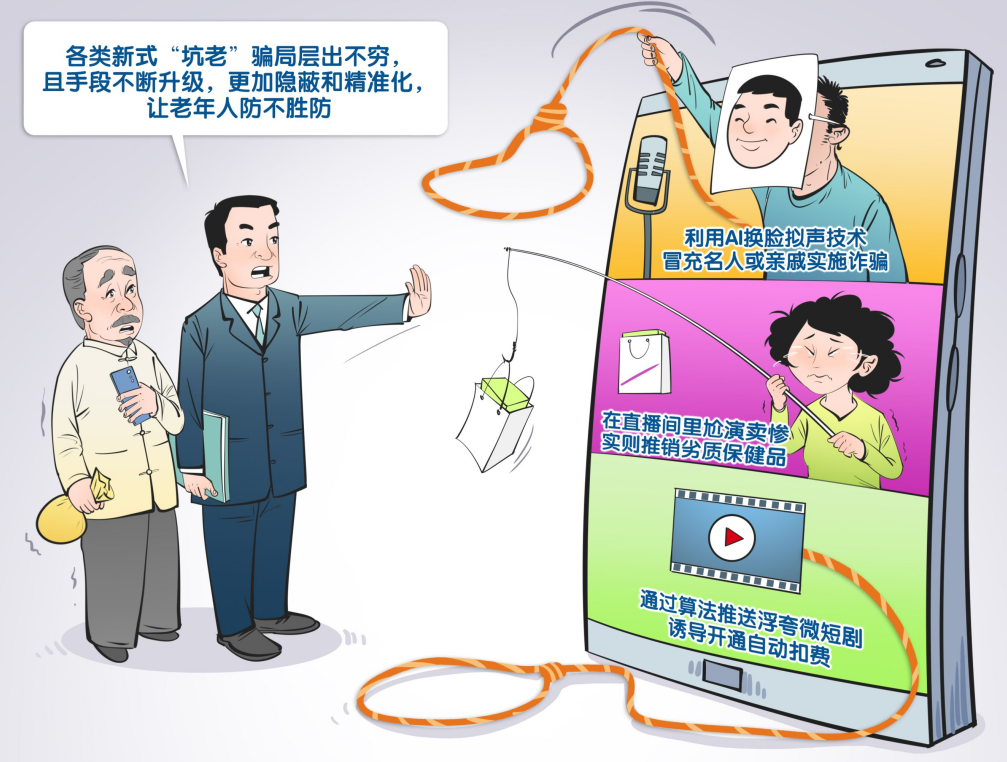 民政部發布的《2024年民政事業發展統計公報》顯示,截至2024年底,全國60周歲及以上老年人口達3.1億人,占總人口的22.0%。一邊是銀發經濟的巨大潛力,一邊是“養老錢”變“被騙錢”的痛心現實。今年8月,中國消費者協會發布的《2025年上半年全國消協組織受理投訴情況分析》指出,老年消費陷阱、私域引流營銷成為上半年投訴熱點。