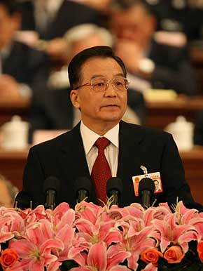 國務院總理溫家寶向大會作政府工作報告。新華社記者 姚大偉