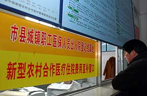 一名病人家屬正在蘭州市榆中縣第一人民醫院咨詢相關情況(2007年1月24日攝)。