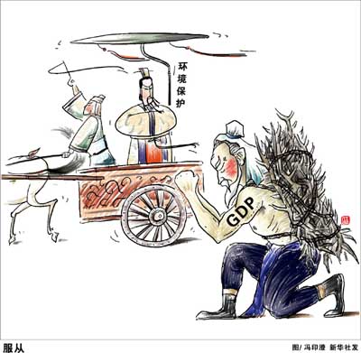 政府工作報告提出,今年要把節能降耗、保護環境等作為轉變經濟增長方式的突破口和重要抓手。一組數字令人警醒:目前流經城市的河段90%受到嚴重污染;全國尚有3.6億農村人口喝不上符合標準的飲用水。 “目前拉動GDP的許多動力來自高耗能、高污染企業!比珖䥇f委員周紹熹認為,以造紙、化工建材、冶金等行業為主,使得全國范圍內污染排放和資源開發都超過了環境承載能力。中國工程院院士殷瑞鈺說,如果不采取有效措施,堅決抑制不惜犧牲環境追求發展速度的“黑色GDP崇拜”,要實現約束性指標難度很大,綠色GDP也只能成為空話。代表委員們認為,不認清環境保護的重要性并緊急行動起來,我國經濟的持續發展將受到嚴重影響。在這個問題上,沒有退路。 “硬性指標如果失去約束力,就將導致環境惡化事件次數增多,百姓生活質量也會越來越受到影響!狈o亨代表說。近年來,治理的速度遠遠趕不上環境被污染的速度,使得國家環保部門出臺區域限批政策,嚴管“耗能高手”、“污染黑手”。