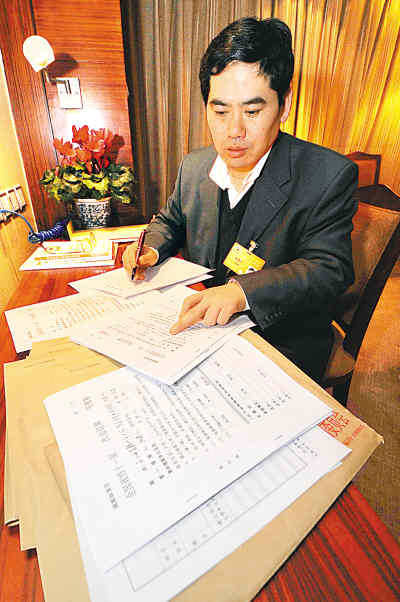 3月1日,全國政協委員湯建人在駐地修改提案,他準備了22個提案。新華社記者