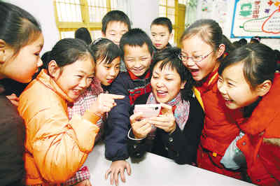 2月28日上午,即將赴京開會的全國人大代表吳新春(中)在四川省遂寧市船山區農民工子弟學!鞂m廟小學看望孩子們,了解學校義務教育情況。鐘敏