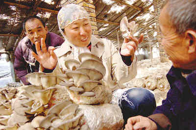 2月27日,全國人大代表魯中祝(中)深入農戶家中,了解蘑菇種植戶需求和生產生活中的困難。陳彬 攝 |