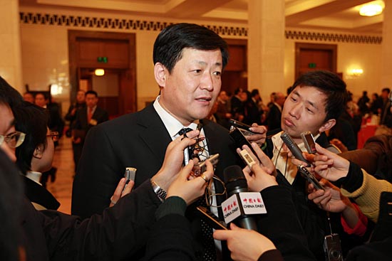 3月3日,中國人民政治協商會議第十一屆全國委員會第一次會議在北京人民大會堂開幕。這是開幕會結束后朱建民委員接受記者采訪。
