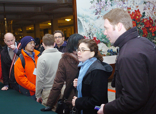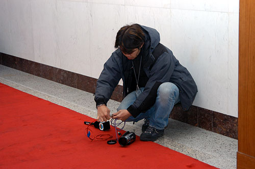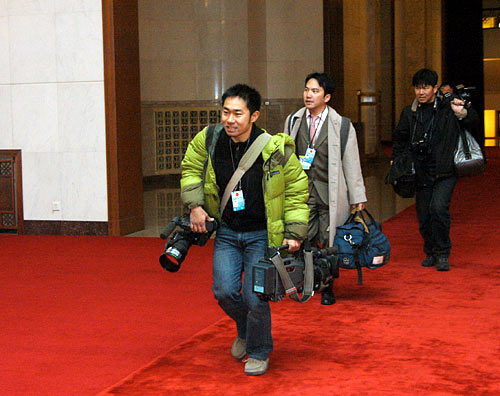 3月5日上午9時,第十一屆全國人民代表大會第一次會議在人民大會堂開幕,聽取國務院總理溫家寶作政府工作報告,審查年度計劃報告和預算報告。圖為外國記者在報到。新華網 陳競超 攝