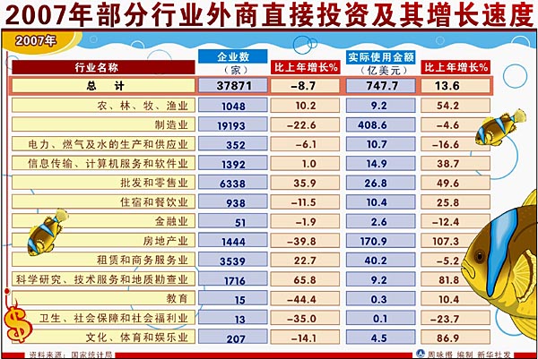 世界銀行在分析中國引資政策和環境后發表的《中國利用外資的前景和戰略研究》報告中指出,2006年至2010年期間,中國將占到預計流入發展中國家的2500億美元外商直接投資(FDI)的30%左右。照此流量,張銳按產業轉移理論分析,跨國公司產業轉移一般遵循先制造業后服務業,然后是研發中心的遞進過程。目前,外企進入中國已經完成了第一階段進入了第二階段。 中國自加入WTO以后,市場變得更加開放,外資也開始向國內不同產業擴展。來自中美商會的統計表明,目前,服務業、物流、銀行和旅游已成為美商投資的新增長點。 在金融服務方面,更多外資銀行在中國增設了分公司,外資參股中國銀行業的規模迅速擴大,農村市場向外資敞開了大門。在物流方面,越來越多的外國物流企業來華投資,中國也相應的為外資物流企業出臺了指南及一套物流企業國家標準。特別是伴隨著制造業與物流業的融合,物流供應鏈越來越成為一個炙手可熱的產業,稀缺的物流網絡資源將吊起外企的新胃口。在航空方面,中美商會出臺的2007年白皮書中說,預計未來20年里,中國民航業將繼續以每年高于9%的速度增長。照此,中國將很快成為繼美國之后世界第二大民用航空市場,從而為美國供應商提供極大的商業機會。 有資料表明,從現在至2010年,包括工程承包、設計咨詢、技術轉讓和物流運輸在內的中國服務貿易業將保持年均20%以上的增長態勢。這給全球的各種外資提供了機會。