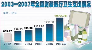 “2007年,中央財政支出29557.49億元,增加6064.64億元,完成預算的110%。其中,超預算最多的項目是醫療衛生支出,其支出規模達664.31億元,增長296.8%,完成預算的212.4%!弊蛱欤3月6日)公布的《關于2007年中央和地方預算執行情況與2008年中央和地方預算草案的報告》透露了上述信息。