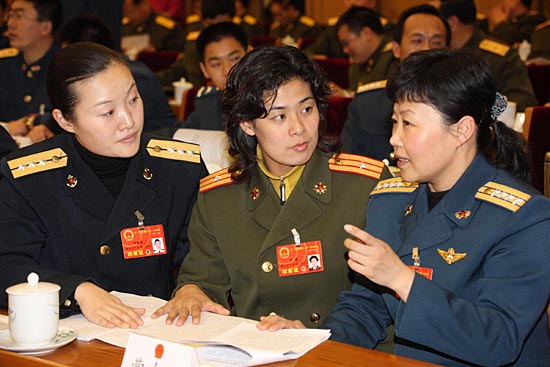 在十一屆全國人大解放軍代表團的代表中,有22名女代表,分別來自戰備訓練、國防科研、醫療衛生、文藝體育等多個戰線。她們在國防和軍隊建設中發揮了重要作用,在人代會上忠實履行著自己的職責。
