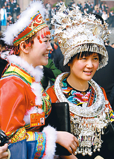 兩會開幕以來,無論是在人民大會堂還是在代表委員們討論的會議室里,處處可見身著民族特色服裝的少數民族的代表和委員們。他們自信的表情及其發自內心的喜悅,處處展示著在中華民族大家庭里各族人民共同發展和進步的和諧氣氛。這是3月10日上午記者從人民大會堂的會議現場抓拍的一組鏡頭。
