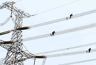 | 年初,杭州電網遭受冰雪災害破壞。圖為電力職工正在修復最后一條受損線路。施健學