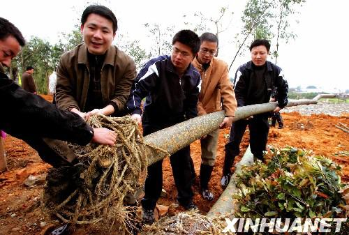 [影像鏈接] 這是福州市倉山區干部群眾在道路兩側種植景觀樹(2007年3月18日攝)。新華社發