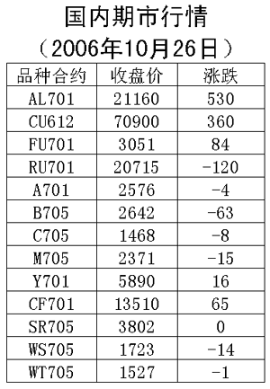 26日國內期貨市場鋁價漲幅最大,其余品種以盤整為主。