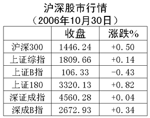 30日,滬深股市先抑后揚。兩市股指早盤小幅低開后,一路震蕩向下,午后在中石化和長江電力等熱點的帶動下,大盤穩步攀升。至尾市,兩市突然翹尾,上拉收紅,上證綜指和深證成指雙雙收出一根小陽線,市場圍繞千八震蕩的特征十分明顯。