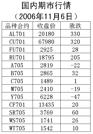 6日國內期貨市場各品種總體上漲,白糖下跌。