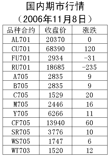 滬銅呈現震蕩走勢。受LME等國際金屬市場期銅周二價格繼續回升的影響,滬銅在稍稍低開后很快企穩并開始回升,但午后略有回落。收盤漲跌互現,小升或微跌。滬銅701合約8日上漲120元/噸,收盤68390元/噸。