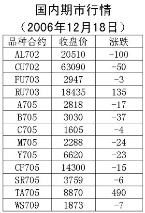 18日國內期貨市場各品種以下跌為主。